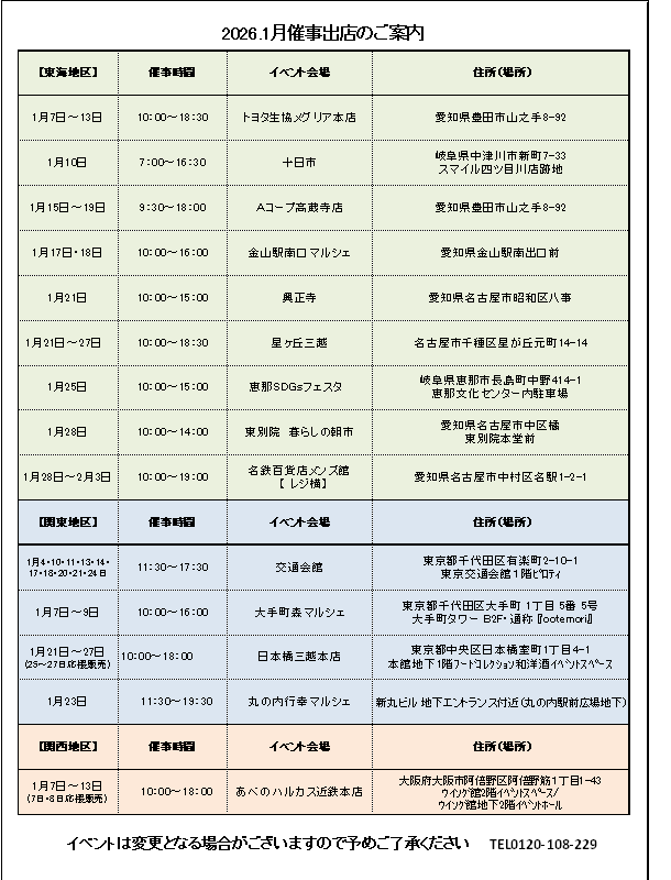 1月催事のご案内