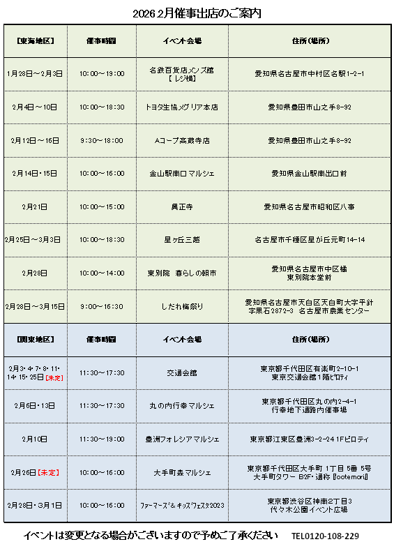 2月催事のご案内